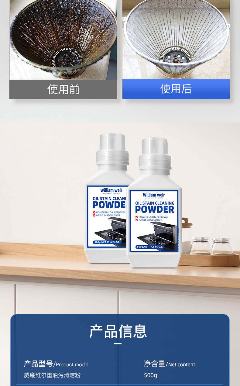 William weir重油污清洁粉500g