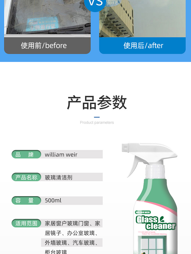 William weir 玻璃清洁剂 500ml
