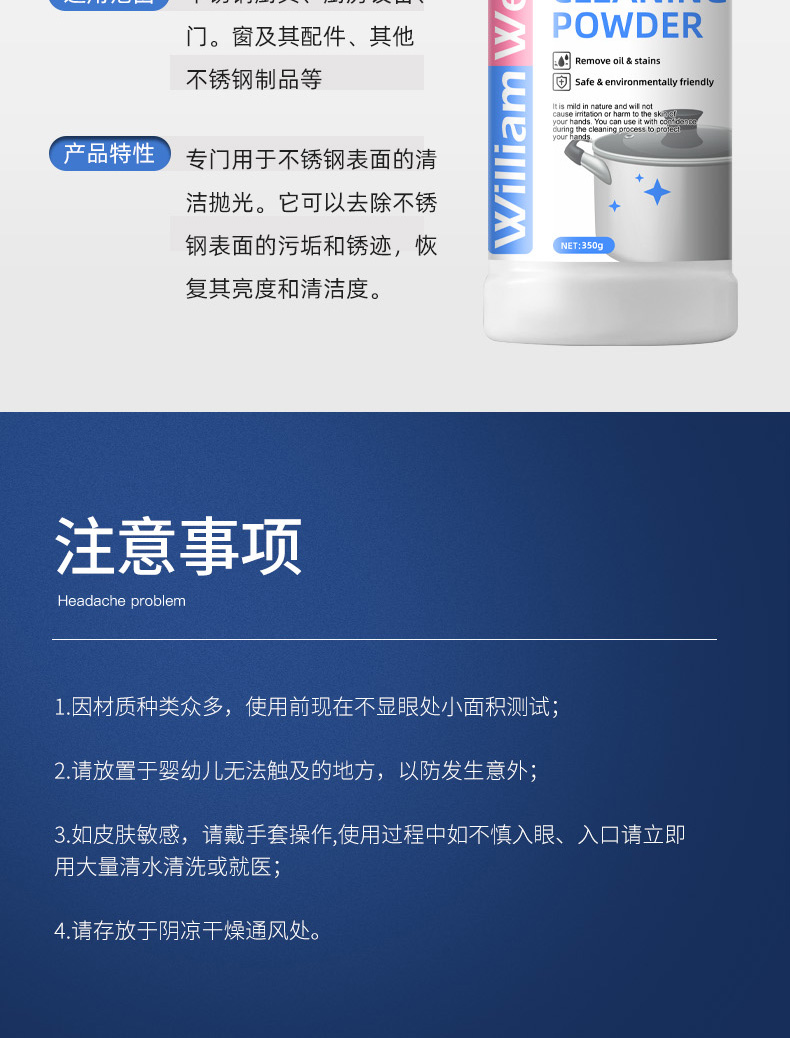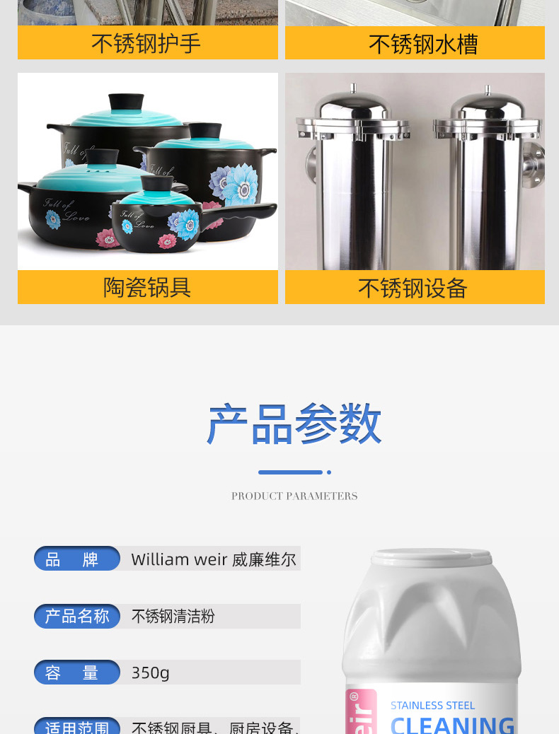 William weir 不锈钢清洁粉 350g