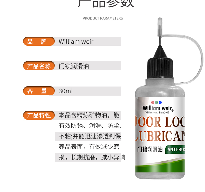 William weir 门锁润滑油 30ml