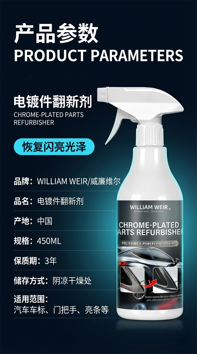 William weir 汽车电镀件翻新剂 500ml