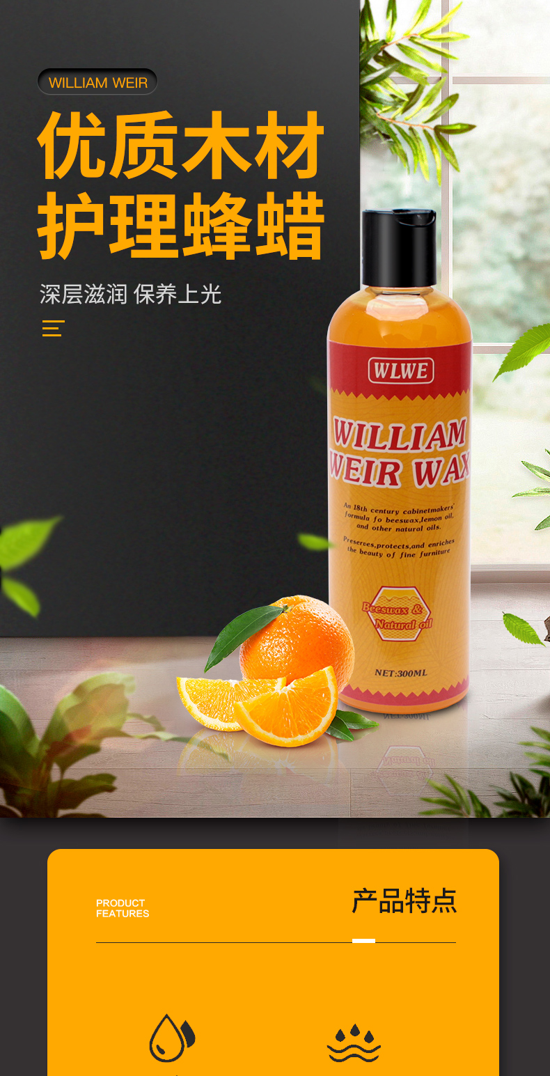 木质护理橙蜡300ml